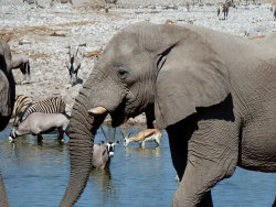 Nachdem wir das Eingangstor zum Etosha-Nationalpark passiert haben, geht es auf die Suche nach den wilden Tieren Afrikas. Der Park beherbergt über 140 Säugetier - sowie über 340 verschiedene Vogelarten. Spätnachmittags erreichen wir die erste Unterkunft im Park. Abends kann man mit Glück Nashörner und Leoparden am beleuchteten Wasserloch beobachten. Ü / F