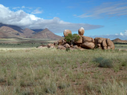 Fahrt über die Spitzkoppe in das Erongogebirge. Ca. 2 stündiger Besuch bei den SAN (Buschmännern) . Die nächste Unterkunft ist in eine faszinierende Granitlandschaft eingebettet. Sundownerfahrt (inklusive) A / Ü / F